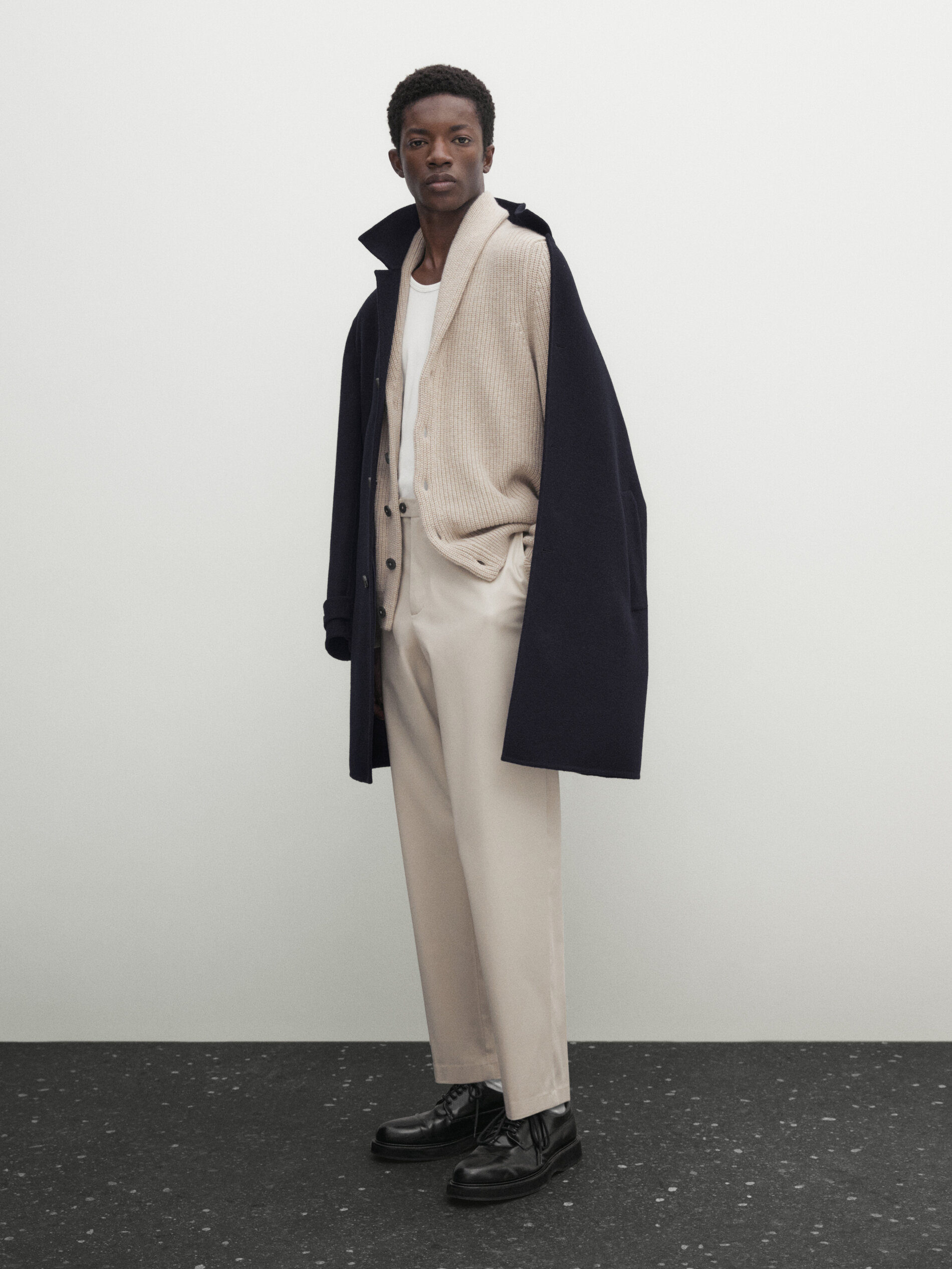 Брюки чинос свободного кроя с ремнем · Бежевый, Темно-синий, Черный